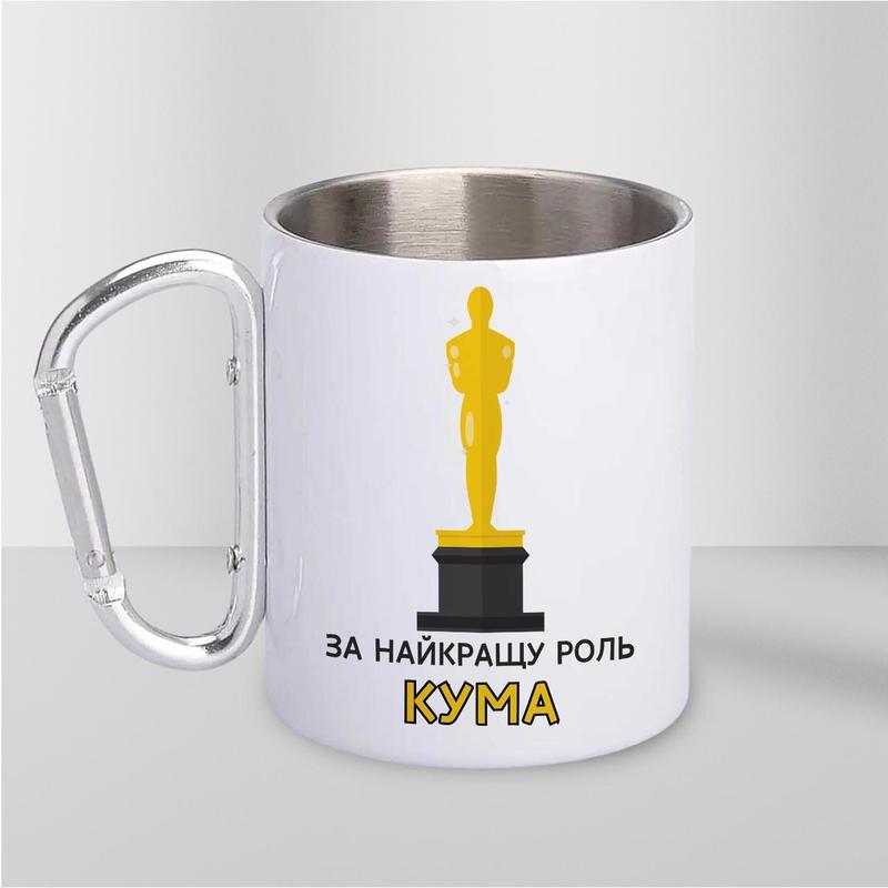 Чашка металева з принтом "за найкращу роль кума" 300 мл з карабіном, біла