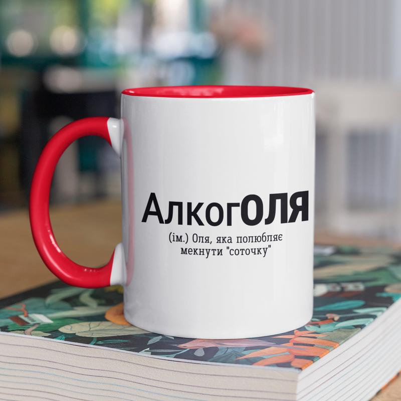 Чашка керамічна з принтом "алкоголя" 330 мл, біла з червоною ручкою