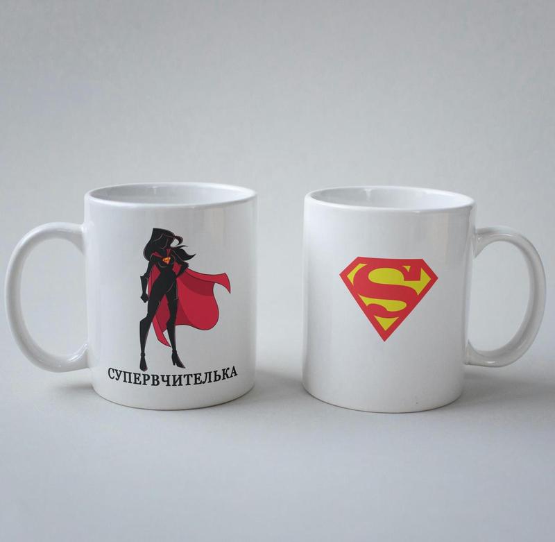 Кружка керамічна з принтом "супервчителька" 330 мл біла