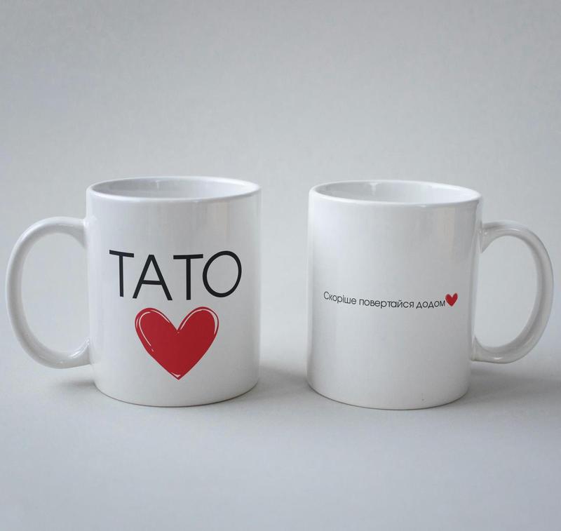 Кружка керамічна з принтом "тато скоріше повертайся" 330 мл біла