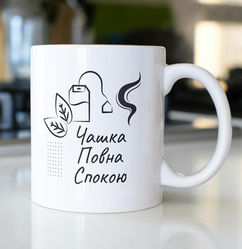 Кружка з принтом "чашка повна спокою" 330 мл біла