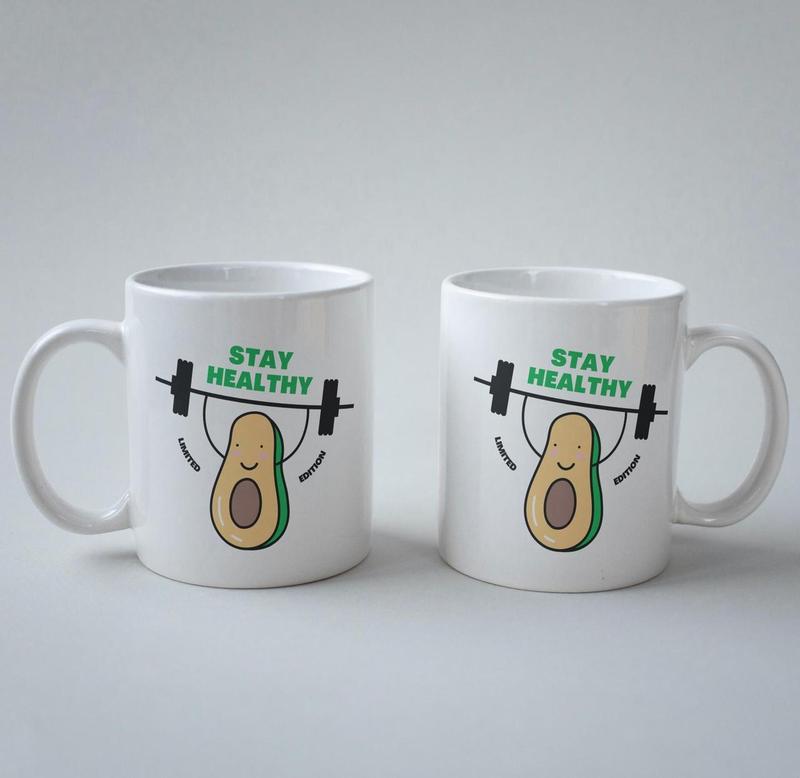 Кружка з принтом "авокадо спорт" 330 мл біла