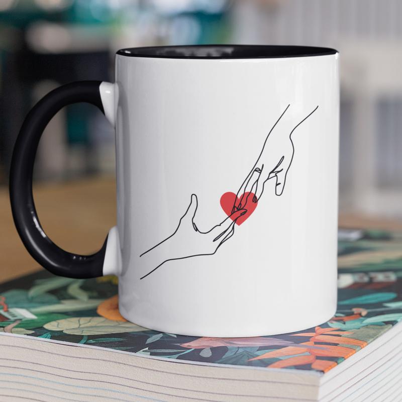 Чашка керамічна з принтом "сердечко" 330 мл, біла з чорною ручкою