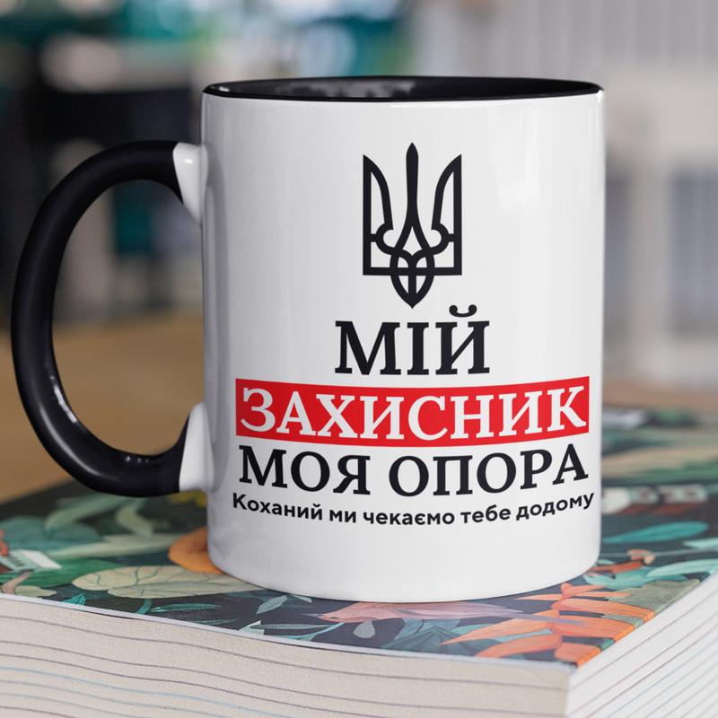 Чашка керамическая с принтом "мой гарант" 330 мл, белая с черной ручкой