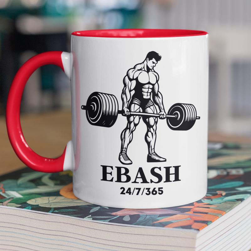 Чашка керамічна з принтом "ebash" 330 мл, біла з червоною ручкою