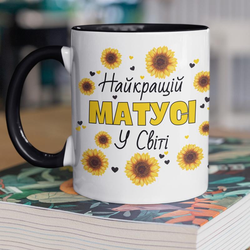 Чашка керамічна з принтом "найкращій матусі у світі" 330 мл, біла з чорною ручкою