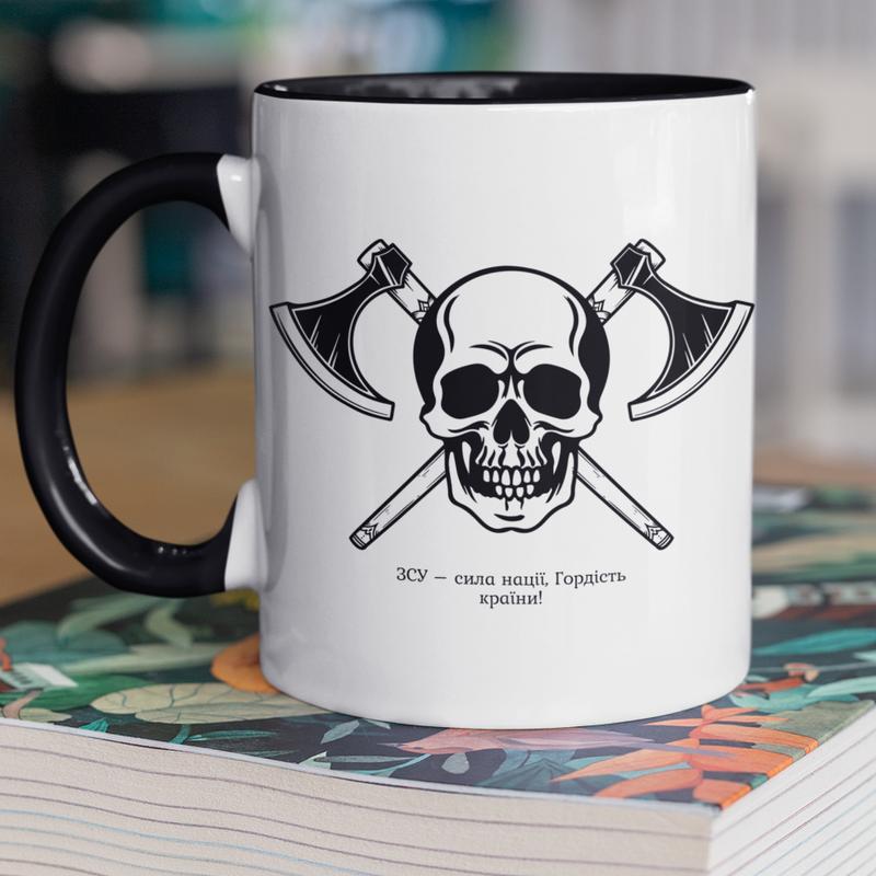 Чашка керамічна з принтом "зсу сила нації" 330 мл, біла з чорною ручкою