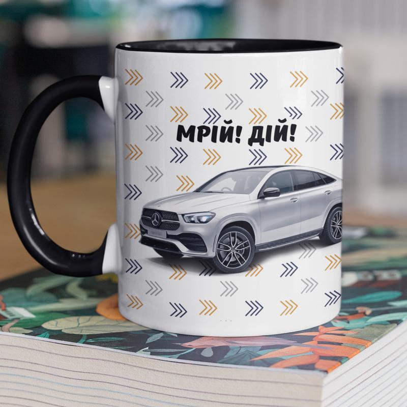 Чашка керамическая с принтом "мрий дрей мэрс" 330 мл, белая с черной ручкой
