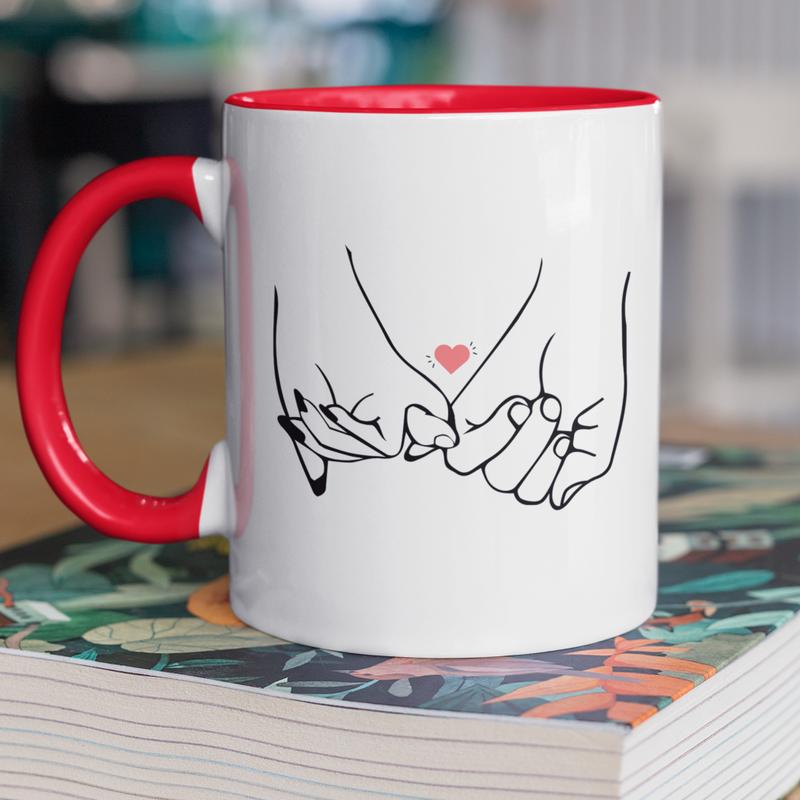 Чашка керамічна з принтом "love you" 330 мл, біла з червоною ручкою