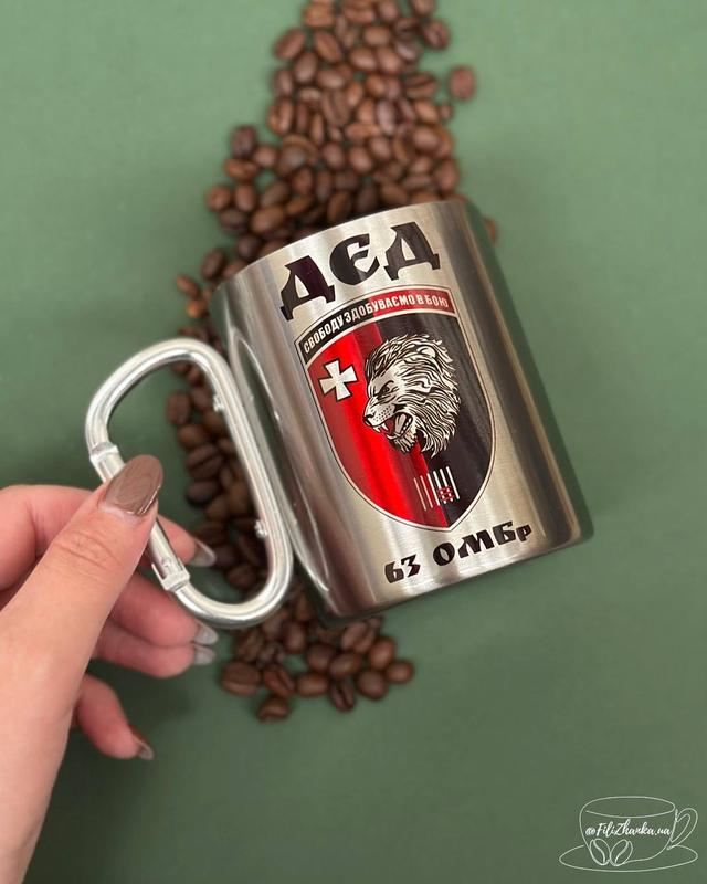 Металева чашка з карабіном⛓️ 💸Ціна: 380 грн (стандартне пакування) 💸Ціна: 405 грн (подарункове пакування🎁) Обʼєм: 300 мл 🇺🇦 Власне виробництво 🇺🇦 🖨️Можливий друк з вашими фото та текстом (розробка макету безкоштовна) 🚀Миттєве виготовлення та швидка відправка 🚚Відправка Новою Поштою/Укрпоштою