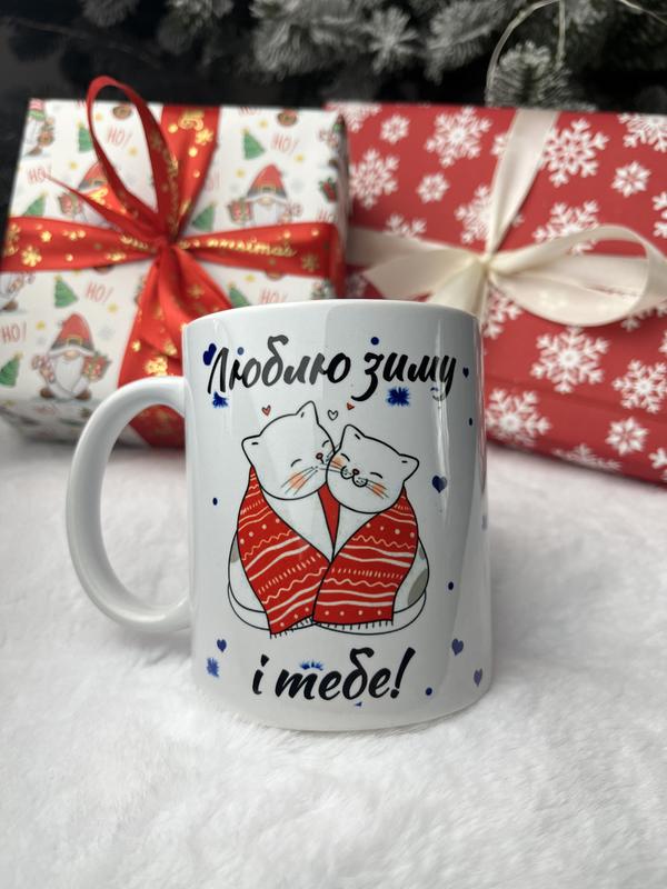Чашка/кружка “люблю зиму и тебя! с двумя обнимающимися котиками.“