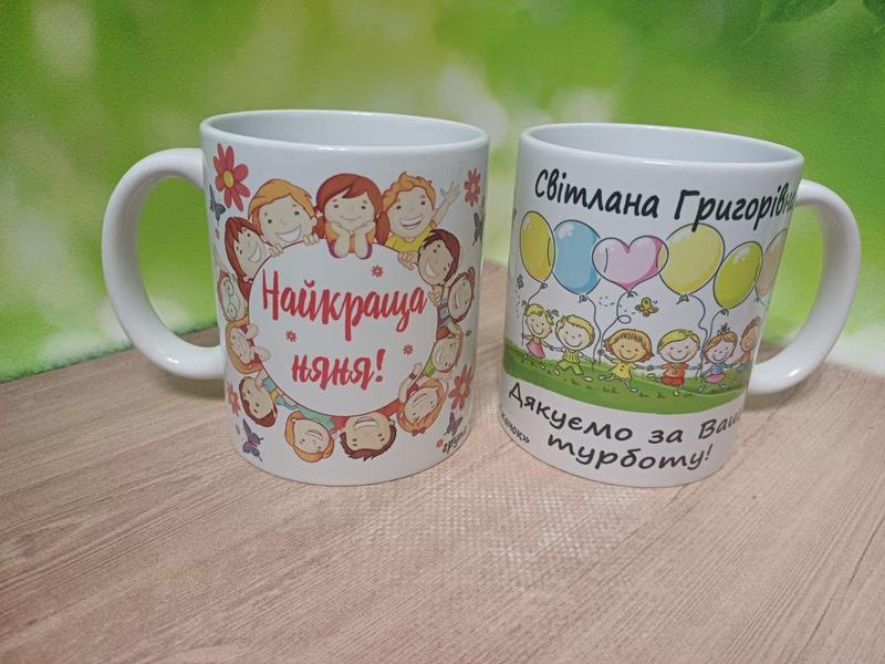 Замість слова няня можна написати вихователь, також можна змінити ім'я - по- батькові Керамічна кружка, мабуть, може вважатися справжньою класикою, і саме вона найчастіше використовується у повсякденному житті. Але хотілося б щоб навіть класичні атрибути життя відрізнялися унікальністю і крім функціонального задоволення дарували й естетичне задоволення. І тут на сцену виходить кружка керамічна з друком. Керамічна основа дозволить підтримувати потрібну температуру, а тонкий шар склоподібної глазурі, окрім надання фарб більш насичених і яскравих відтінків, також дозволить зберегти білість поверхні на тривалий час. Замовляйте керамічні кружки з друком та додайте звичним речам нові фарби. - Виготовлено з кераміки - Повнокольоровий друк - Зручна ручка