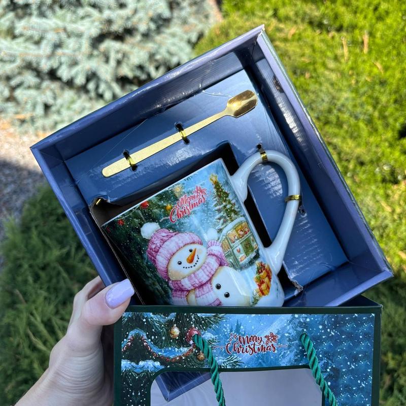 Керамічна чашка 500мл, "сніговичок" в подарунковій упаковці