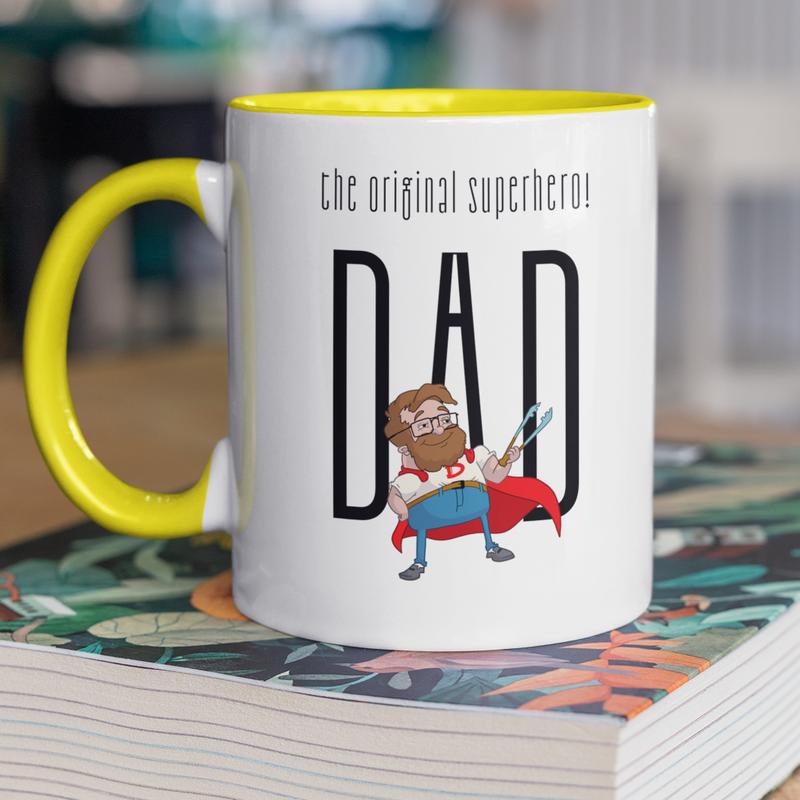 Чашка керамическая с принтом "dad" 330 мл, белая с желтой ручкой