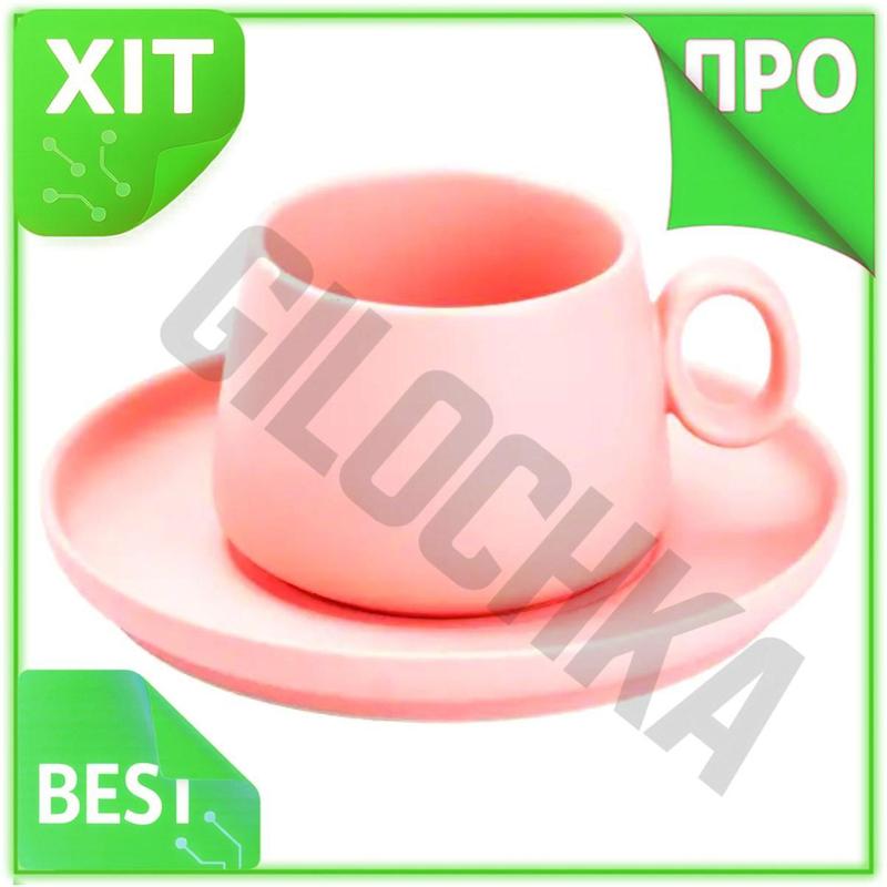 Ve чашка з блюдцем порцелянова new version 300 мл рожева для кави та чаю керамічна чашка з...