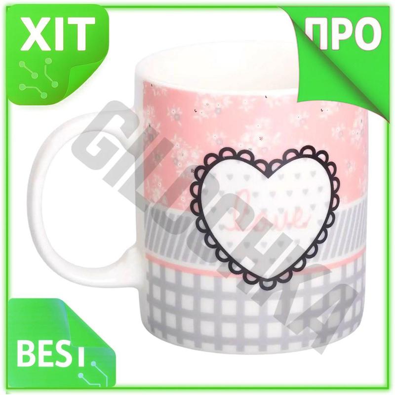Ve порцелянова чашка 400 мл new version lugi сіра з написом та серцем для кави та чаю. еле...