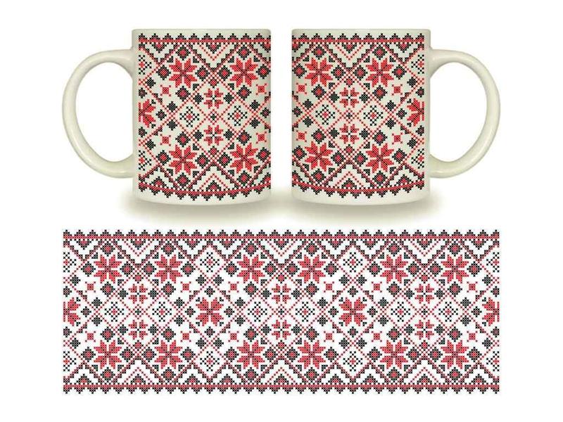 Чашка 325мл фарфор цилиндр вышиванка красный цветок в под. коробке 3716/3516 тм kvarta