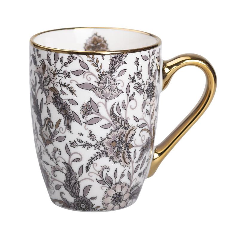 Фарфоровая чашка 400 мл с золотым ободком и золотой ручкой серая rx-n240665g