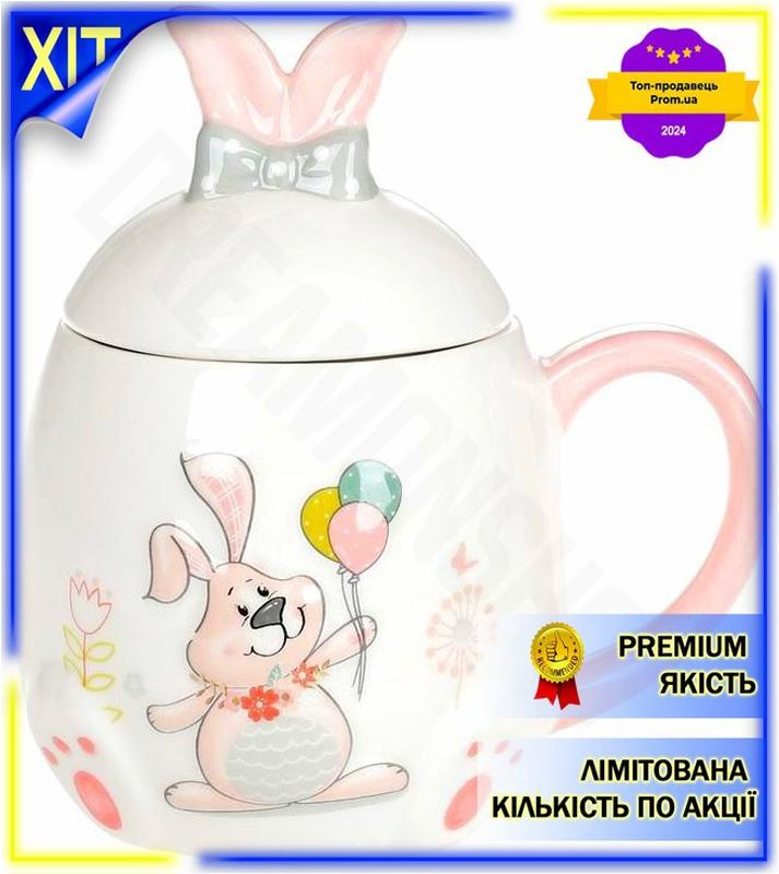 Dm керамічний кухоль веселий специфікація 2.2 кролик 450мл з кришкою для чаю та кави посуд...