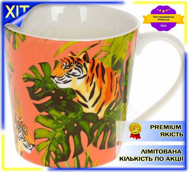 Dm кружка порцелянова тигр специфікація 2.2 390мл рожева чашка з тигром для чаю та кави по...