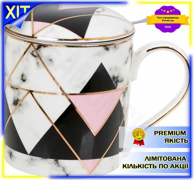 Dm кружка-заварник порцелянова чорний специфікація 2.2 мармур 380мл із ситом для чаю та тр...