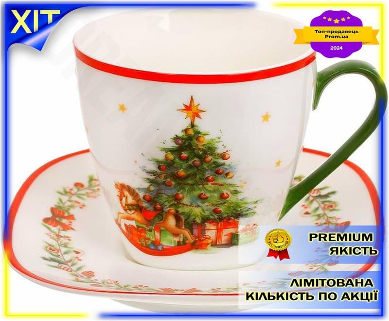 Dm чашка порцелянова із специфікація 2.2 блюдцем різдвяна ялинка 220мл святкова пара для ч...