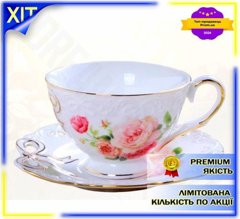 Dm чайная пара бант спецификация 2.2 фарфоровая 220мл для одного человека набор чашка с бл...
