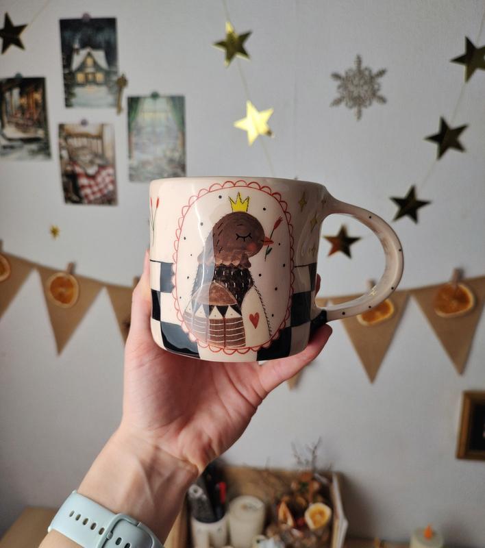 Чашка ручної роботи зі Слав'янської, української глини🥰 ручний розпис 380 мл, для чаю, какао, латте супер на подарунок🎁