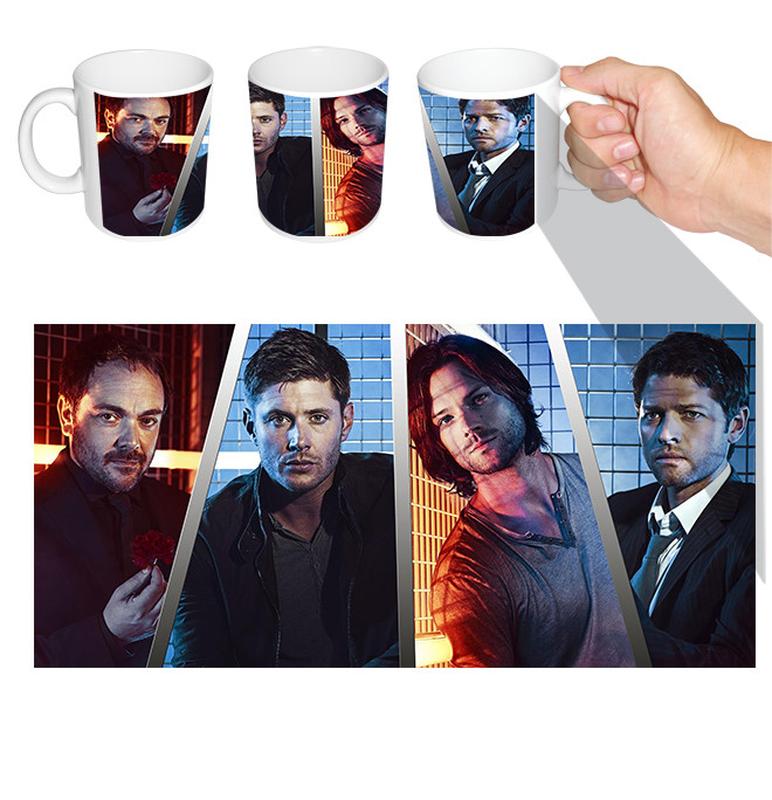 Чашка белая сверхъестественное дин сэм кас кроули (z0042)
