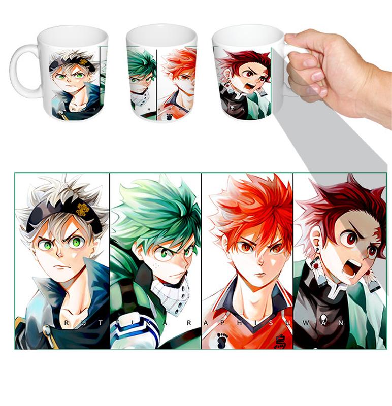 Чашка белая аниме кроссовер аста хината мидория танджиро (z0470)
