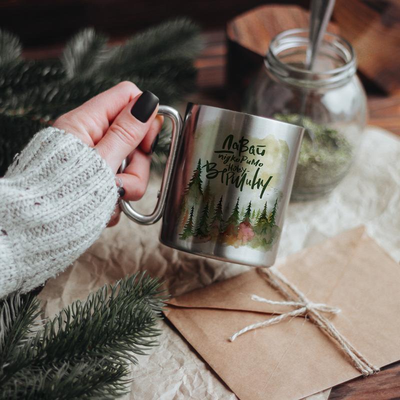 Кружка металлическая объемом 300 мл. Уникальность кружки в том, что она имеет двойные стенки, а это значит, что напиток надолго останется горячим и при этом не будет обжигать руки. Благодаря удобной ручке в виде карабина кружка может крепиться к поясу или на рюкзак.
