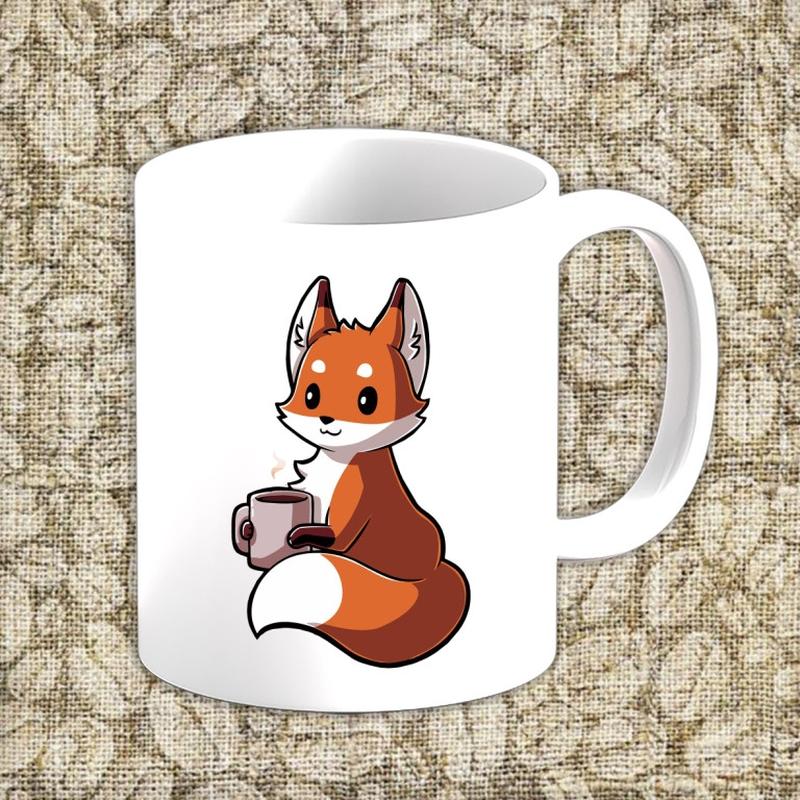 Біла кружка (чашка) з принтом "лисиця з чашкою кави"
