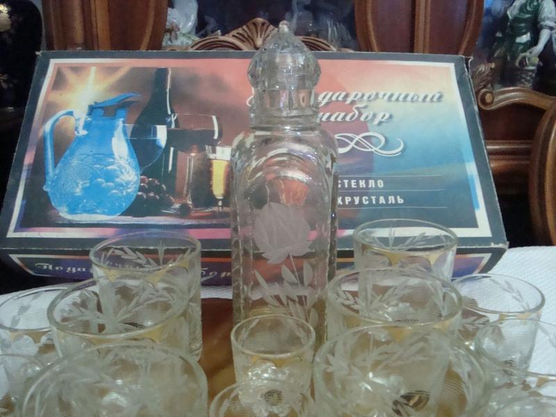 НОВЫЙ РОДНАЯ КОРОБКА НЕ ИСПОЛЬЗОВАЛСЯ БЕЗ СКОЛОВ И ТРЕЩИН 19 ПРЕДМЕТОВ ! ГРАФИН - ВЫСОТА 25 СМ., СТАКАНЫ 6 ШТ - ВЫСОТА 9 СМ., ДИАМЕТР ВЕРХА 8 СМ. СТОПКИ 6 ШТ - ВЫСОТА 6,5 СМ., ДИАМЕТР ВЕРХА 6 СМ., СТОПКИ 6 ШТ. - ВЫСОТА 5 СМ., ДИАМЕТР ВЕРХА 5 СМ.