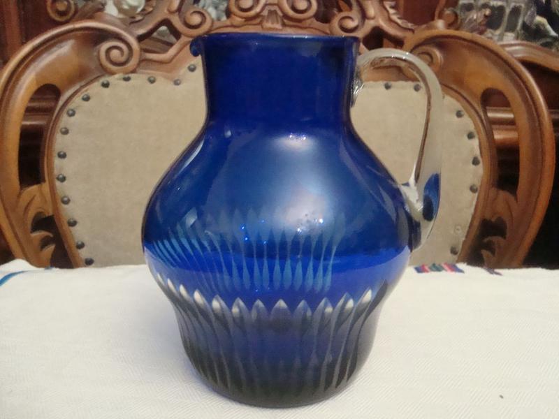 Кувшин СССР Кобальт Цветное Стекло Без сколови трещин Высота 16 см. 1 литр