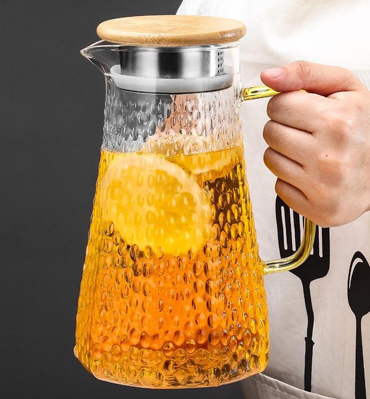 Кувшин с крышкой Кувшин с крышкой изготовлен из стекла, в процессе изготовления упрочняясь более чем в три раза по сравнению со стандартным стеклом. Так же к плюсам данного материала можно отнести абсолютно гладкую поверхность, препятствующую проникновению бактерий и посторонних запахов в посуду. Характеристики: - Тип: кувшин - Материал: стекло - Материал ручки: стекло - Материал крышки: дерево - Цвет: прозрачный