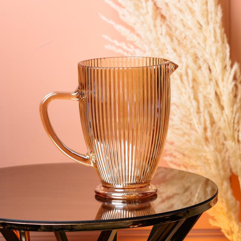 Кувшин для напитков ребристый 1,2 л с толстого стекла янтарный