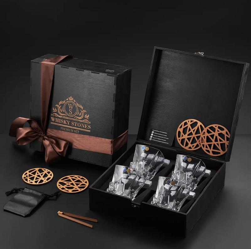 Набір для віскі "crack" у подарунковій упаковці на 4 келихи, каміння для віскі на подаруно...