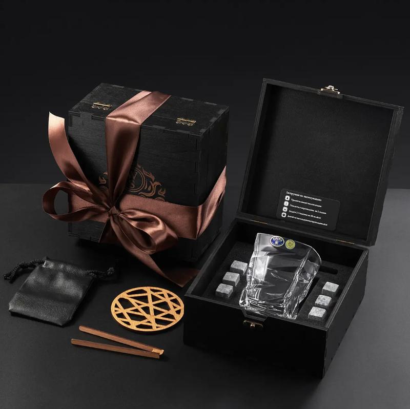 Набір для віскі "zig-zag" у подарунковій упаковці на 1 келих, каміння для віскі на подарун...