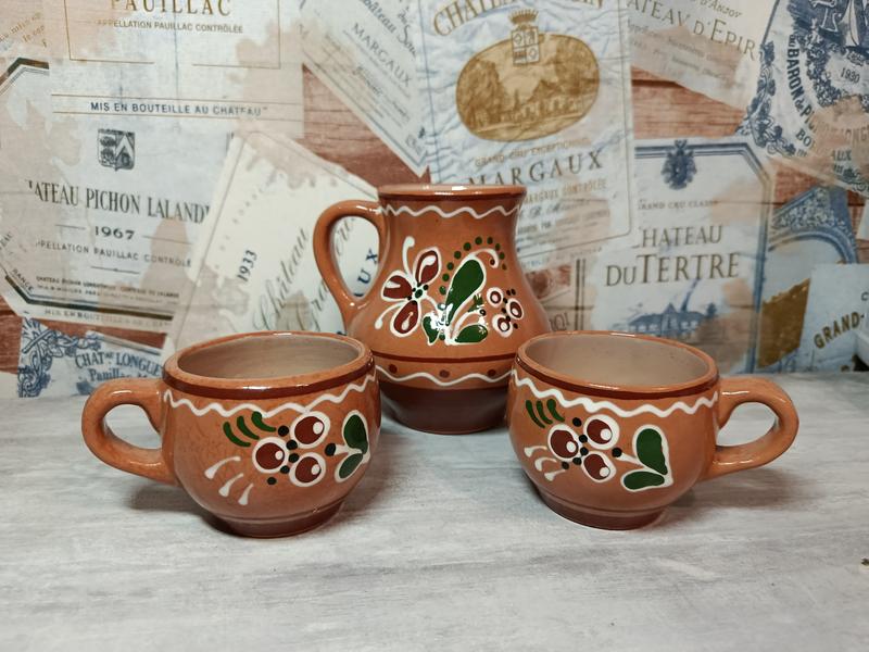 Кувшин и чашки. обливная керамика. маньковский майолыковый завод.