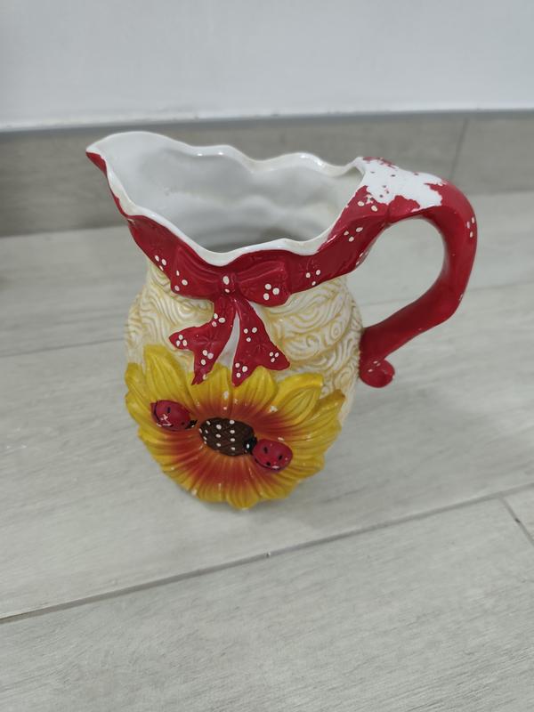 Кувшин керамический Высота 16 см Сверху там где ручка облезла красная краска