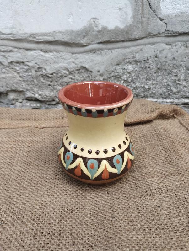 маленький глечик, кераміка майоліка вінтажна. Є скіл на дні. Не глибокий, фото є. Думаю можна реставрувати. А так річ дуже гарна