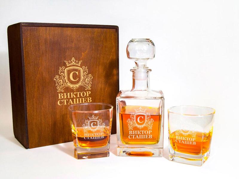 Подарочный набор из графина и 2х стаканов с именной гравировкой графін + 2 склянки, дерев'...