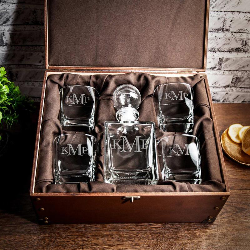 Стильний подарунковий набір для віскі графін + склянки з гравіюванням на коробці графін +...