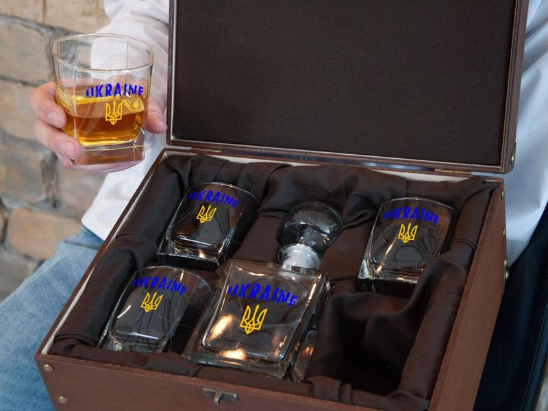 Набор для whisky на 2-6 человек графін + 4 склянки, дерев'яна скриня