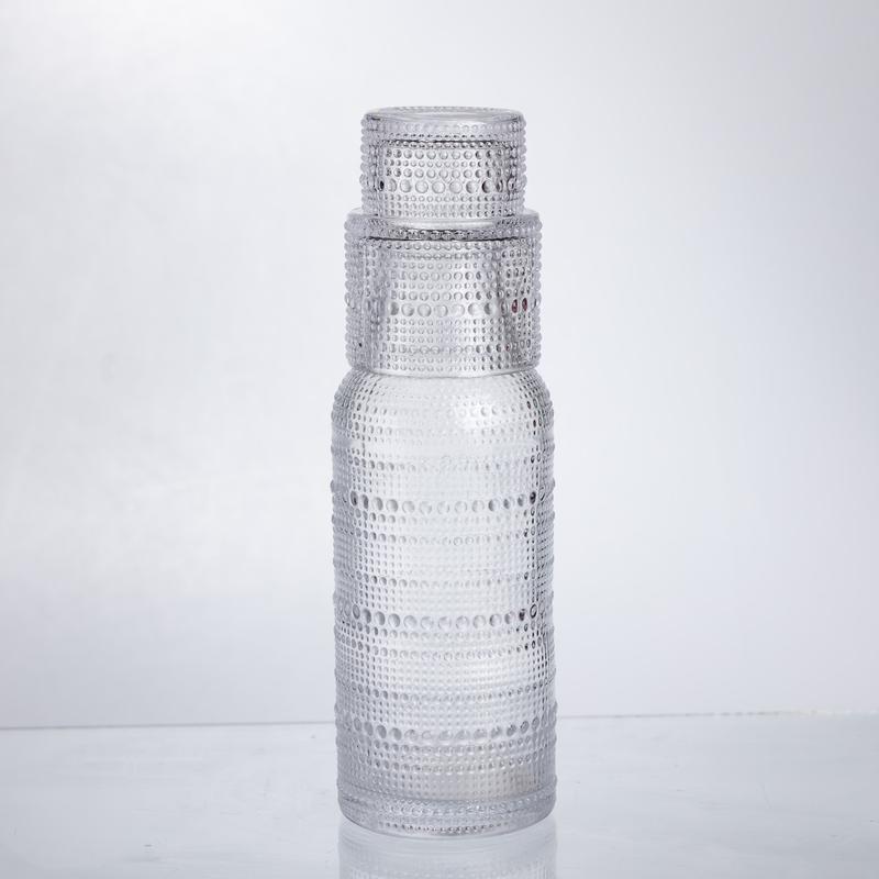 Стильный набор из кувшина и стакана станет не только практичным, но и декоративным элементом на вашей кухне или рабочем столе. Выполнен из прочного рифлёного стекла , который добавляет изысканности и уюта. Характеристики набора стакана с кувшином: Высота кувшина: 25 см; Диаметр кувшина: верх - 4.5 см, низ - 8 см; Объем кувшина: 700 мл; Материал: стекло; Количество предметов: 2 ( 1 стакан + 1 кувшин). Особенности кувшина со стаканом для воды: Компактный дизайн: стакан удобно надевается на кувшин сверху, экономя место при хранении. Универсальное применение: идеально подходит для воды, сока или лимонада. Современный стиль: гармонично впишется в любой интерьер. Такой набор станет не только практичным решением для повседневного использования, но и стильным элементом сервировки. Кувшин со стаканом гармонично дополнят интерьер кухни, офиса или гостиной и подчеркнут вашу заботу о комфорте и эстетике в доме.