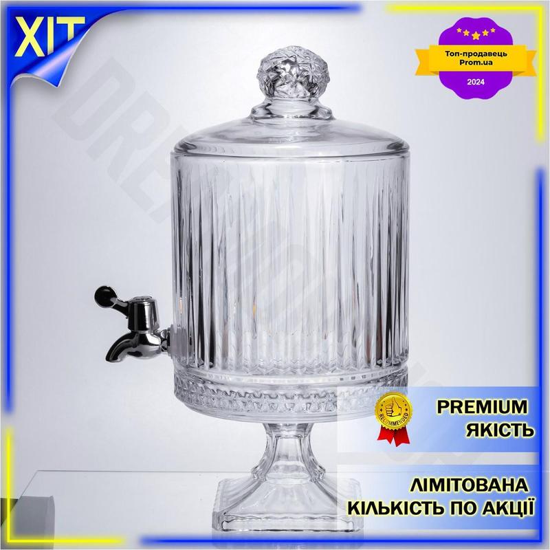Dm лимонадниця з краном специфікація 2.2 скляна 4,5л прозора для напоїв на святковий стіл...