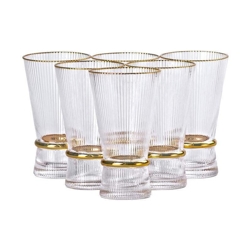 Набір високих склянок - це втілення елегантності та сучасного стилю. Кожна склянка з місткістю 400 мл ідеально підходить для подачі різноманітних напоїв, таких як соки, коктейлі або прохолодна вода. Прозоре скло підкреслює кольори напоїв, а золотий ободок додає розкішного вигляду, перетворюючи кожну мить на особливий. Висока форма склянок створює дивовижний візуальний ефект, роблячи їх прекрасним доповненням до будь-якого столу. З висотою 13,5 см ці склянки не лише мають стильний вигляд, а й зручні у використанні. Характеристики: Кількість: 6 штук Об'єм: 400 мл Висота: 13,5 см Матеріал: скло Переваги: Елегантний стиль із золотим обідком надає склянкам розкішного вигляду. Об'єм 400 мл ідеально підходить для різноманітних напоїв, таких як соки, коктейлі та вода. Прозоре скло підкреслює яскравість і колір напоїв, створюючи винятковий вигляд. Висота 13,5 см забезпечує комфортне використання та легкість у користуванні. Ідеальні для святкових заходів, романтичної вечері та повсякденних обідів, додаючи атмосферу вишуканості. Догляд: Рекомендується мити вручну з м'якими мийними засобами, щоб зберегти блиск і цілісність золотого обідка. Уникайте використання абразивних губок і посудомийних машин, щоб запобігти пошкодженню декору. Зберігайте келихи у вертикальному положенні, щоб уникнути подряпин і відколів на поверхні.