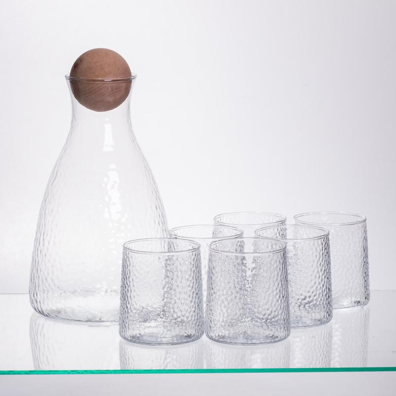 Набор для напитков графин с бамбуковой крышкой и 6 стаканами, прозрачный 64486-37