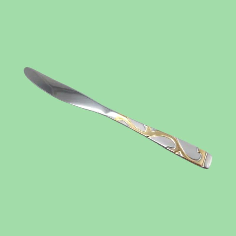 Ніж столовий нержавіюча сталь Золотий візерунок з позолотою L 22,5 cm в упаковці 12 штук з нержавіючої сталі УВАГА! СТОЛОВІ ПРИБОРИ ВІДВАНТАЖУЮТЬСЯ ТІЛЬКИ УПАКОВКАМИ! ПОШТУЧНО НЕ ПРОДАЮТЬСЯ! В УПАКОВЦІ 12 ШТУК ЦІНА НА САЙТІ ВКАЗАНА ЗА 1 ШТУКУ!