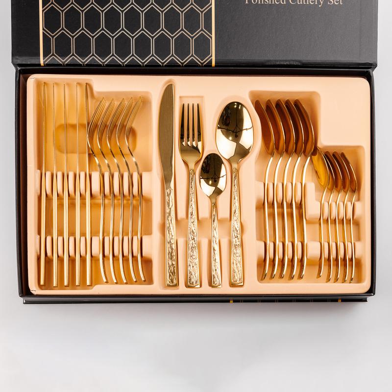 Набір столових приборів із нержавіючої сталі в золотому кольорі на 6 персон 24 штуки